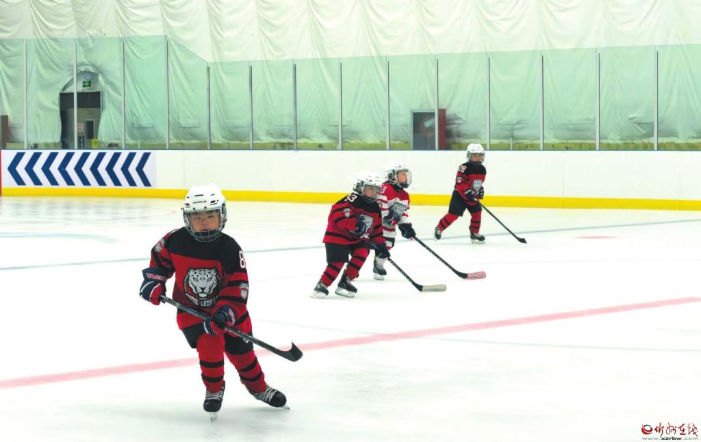 10月31日,忻州市云中河冰雪運動中心的室內(nèi)滑冰館內(nèi),一群孩子正在進行冰球訓(xùn)練,盡享冰雪運動帶來的樂趣與魅力。 (記者 張存良攝)