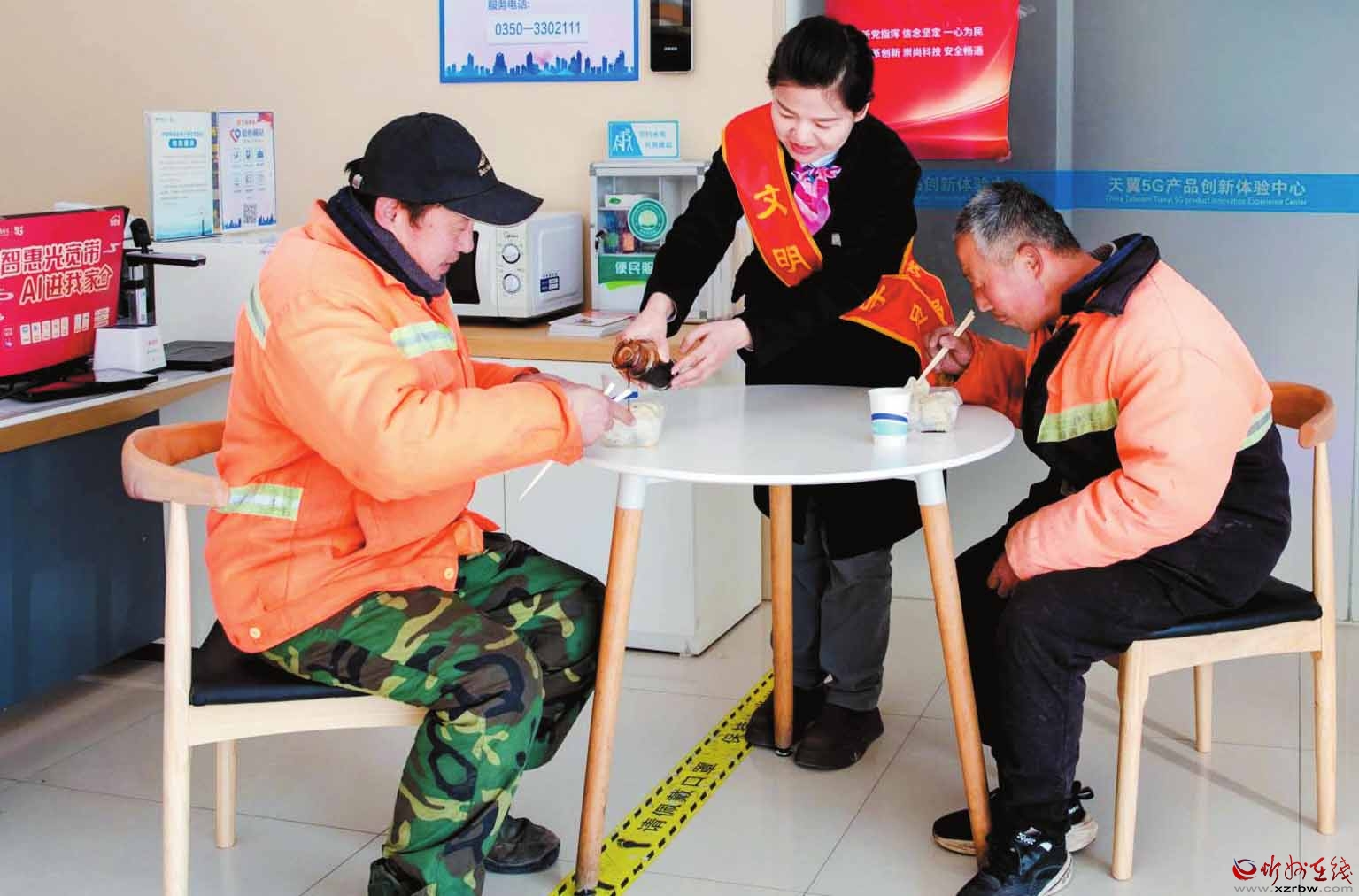 12月21日,正值冬至?xí)r節(jié),中國電信忻州分公司開展“情暖冬至翼路相伴”特別公益活動(dòng),為在寒風(fēng)中默默堅(jiān)守的環(huán)衛(wèi)工人送去電信人的深情關(guān)懷與溫暖守護(hù),以實(shí)際行動(dòng)彰顯央企的社會(huì)責(zé)任與擔(dān)當(dāng)。