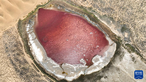10月22日拍攝的巴丹吉林沙漠中的紅海子(無人機照片)。(新華社記者 貝赫 攝)