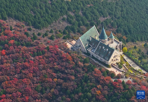 10月28日拍攝的天津市薊州區(qū)一度假酒店秋景(無人機(jī)照片)。(新華社記者 李然 攝)