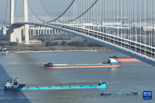 11月26日拍攝的南京新生圩長江大橋(無人機(jī)照片)。(新華社記者 毛俊 攝)