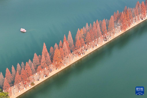 連日來(lái),湖南省長(zhǎng)沙市烈士公園的水杉樹(shù)葉轉(zhuǎn)紅,在冬日暖陽(yáng)的映照下,園內(nèi)景色如畫,吸引不少市民前來(lái)游玩打卡。