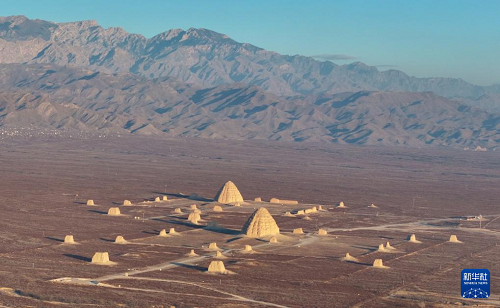 12月28日清晨拍攝的西夏陵(無人機照片)。(新華社發(fā) 袁宏彥 攝)