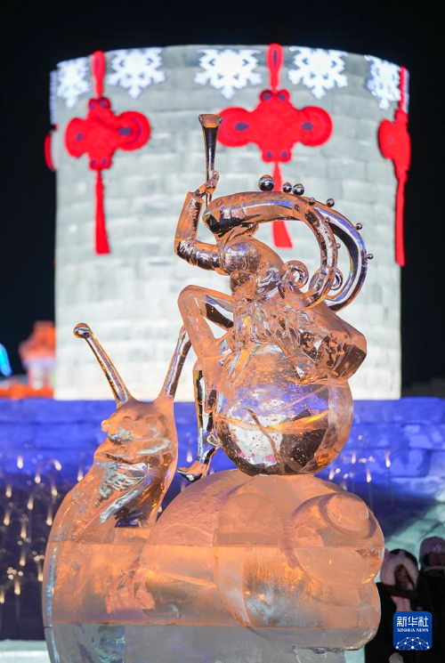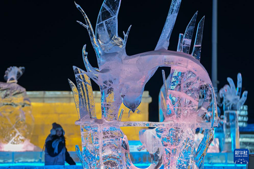 近日,一批冰雕新作在哈爾濱冰雪大世界亮相,與第37屆中國·哈爾濱國際冰雕比賽作品及園區(qū)原有冰雕遙相輝映,共同點(diǎn)亮北國冬夜。