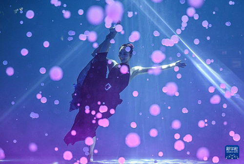 1月14日,舞者在2026中國極限舞蹈表演賽期間進行水下舞蹈表演。(新華社記者 蒲曉旭攝)