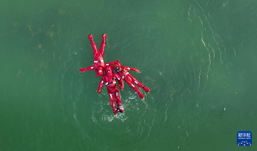 1月17日,市民在銀川文旅集團覽山公園體驗“冰浮小龍蝦”特色項目(無人機照片)。(新華社記者 王鵬 攝)