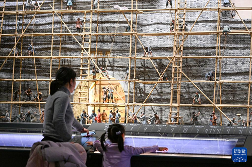 2月12日,小朋友和家長在南京城墻博物館參觀。(新華社發(fā) 楊素平 攝)