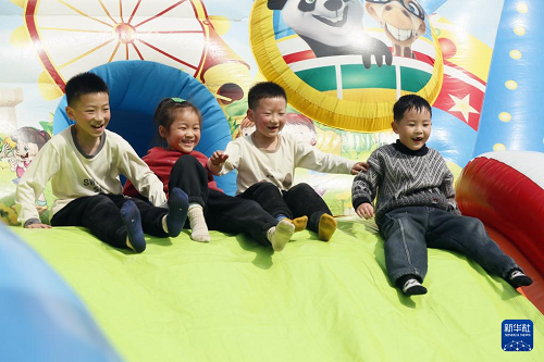 2月13日,小朋友在河南省洛陽市汝陽縣劉伶廣場玩耍。(新華社發(fā) 康紅軍 攝)