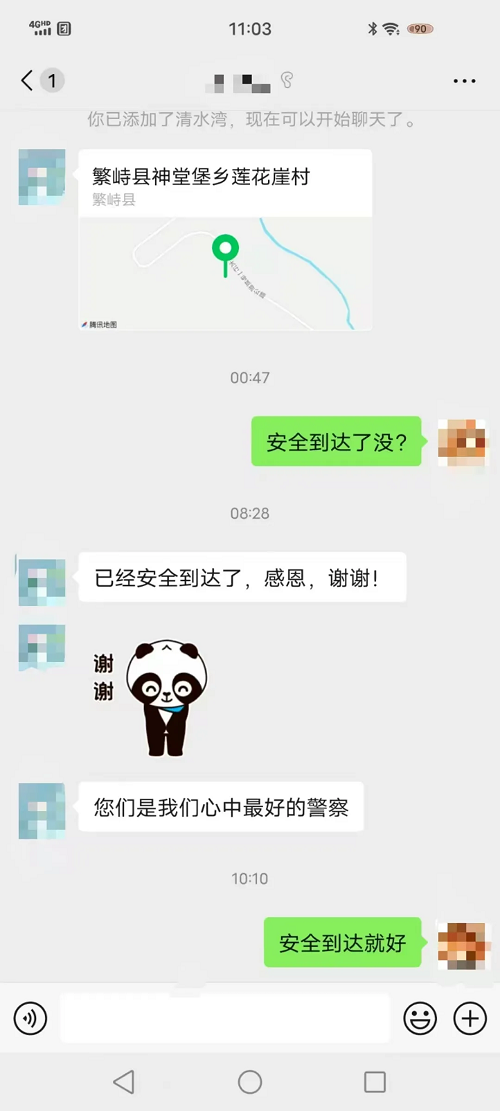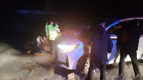 接到報(bào)警后,神堂堡派出所民警迅速通過電話聯(lián)系報(bào)警人,得知車上共有七人,多為婦女兒童,民警首先安撫游客情緒,并在確定具體地點(diǎn)后,立即與神堂堡交警中隊(duì)民警驅(qū)車趕往事發(fā)地。到達(dá)現(xiàn)場后,民警了解到,報(bào)警人張某與家人朋友自駕前往五臺(tái)山旅游,開到蓮花崖大峽谷山區(qū)路段時(shí)由于路面有冰導(dǎo)致車輛打滑沖出路面,車輛正被困在一處斜坡處,距離前面的深溝只有一米左右,進(jìn)退兩難,無法動(dòng)彈。此時(shí),車上幾名游客已凍得瑟瑟發(fā)抖,情況不容樂觀。民警們第一時(shí)間制定救援措施,他們不畏嚴(yán)寒、相互配合,經(jīng)過長時(shí)間的努力,終于將被困車輛從冰面推到了無冰路段。車輛脫困,游客對民警們的及時(shí)救援表示了由衷的感謝,緊緊握住民警的手,激動(dòng)地說:“非常感謝警察同志的幫助,您們是我們心中最好的警察!”