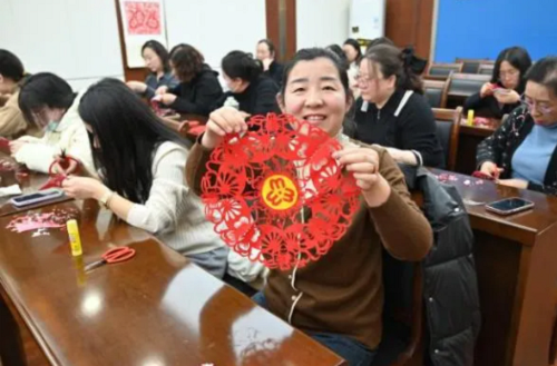 此次活動特邀五臺非遺剪紙傳承人王森煒現(xiàn)場教學,從折疊技巧到紋樣設(shè)計,從鏤空雕刻到細節(jié)精修,干警們在老師的指導(dǎo)下沉浸式感受剪紙藝術(shù)的魅力。紅紙翻飛間,一幅幅寓意幸福吉祥、展現(xiàn)女性力量的剪紙作品逐漸成型。指尖流淌的不僅是傳統(tǒng)技藝,更是檢察女性剛?cè)岵⒔承莫氝\的精神底色。