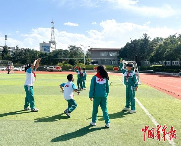 9月8日下午,記者來到固原市原州區(qū)第十一小學(xué)(以下簡稱“原州十一小”)。課間15分鐘,教學(xué)樓前的空地上,學(xué)生們跳繩、打沙包、跳方格,歡笑聲此起彼伏;30分鐘大課間時(shí)段,在學(xué)校老師陪伴下,56個(gè)班級2976名學(xué)生參加“迷你軍訓(xùn)”、武術(shù)、球類運(yùn)動(dòng)、冰壺訓(xùn)練、自由運(yùn)動(dòng)等,響亮的口號聲在操場回蕩;體育課上,孩子們以班級為單位,踢足球、打羽毛球、打籃球,一張張笑臉上洋溢著蓬勃朝氣。