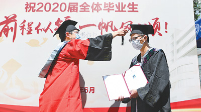 接過學(xué)位證書,本科畢業(yè)生蔡杰和院長(zhǎng)拍了一張合影。他說:“沒有遺憾了,這個(gè)畢業(yè)典禮特殊而完美!”