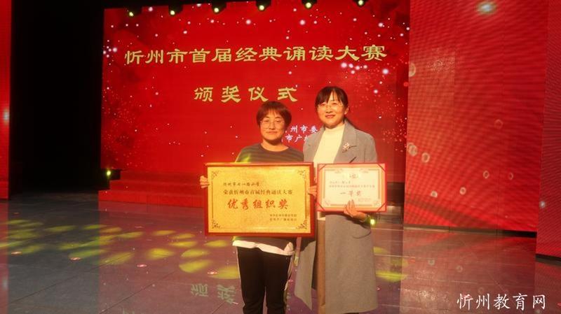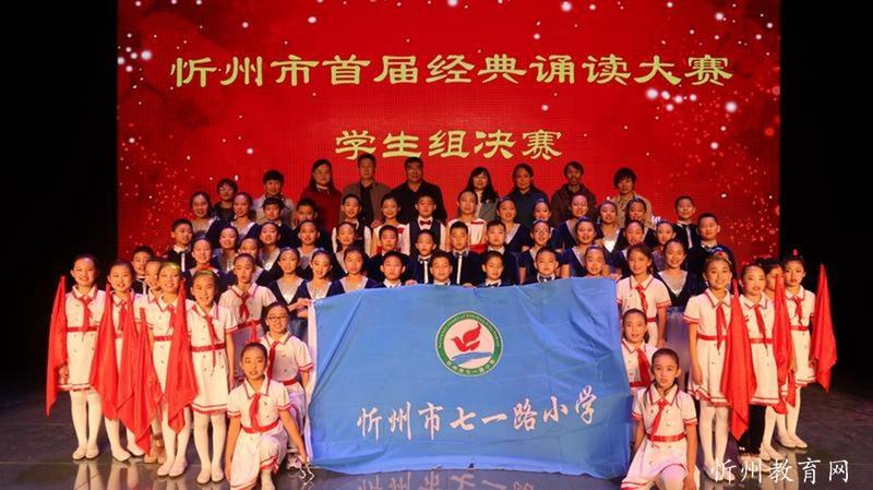 “共讀中華經(jīng)典,聆聽古詩書韻”。由中共忻州市委宣傳部主辦,忻州市廣播電視臺承辦 “忻州市首屆經(jīng)典誦讀大賽”經(jīng)過初賽海選和緊張激烈的復(fù)賽和決賽,于11月1日落下帷幕。本次比賽學(xué)生組共有四十一個參賽節(jié)目,經(jīng)過角逐,有十個節(jié)目進(jìn)入了決賽。決賽采取評委當(dāng)場亮分,現(xiàn)場點(diǎn)評的方式,最終評出一等獎一名,二等獎二名,三等獎三名,最佳風(fēng)采獎四名。七一路小學(xué)以98.51分的成績奪冠,榮獲學(xué)生組一等獎。同時學(xué)校也榮獲優(yōu)秀組織獎。