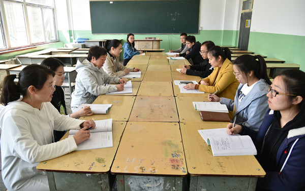 我校教師分組認真觀摩北方教師的課堂教學。