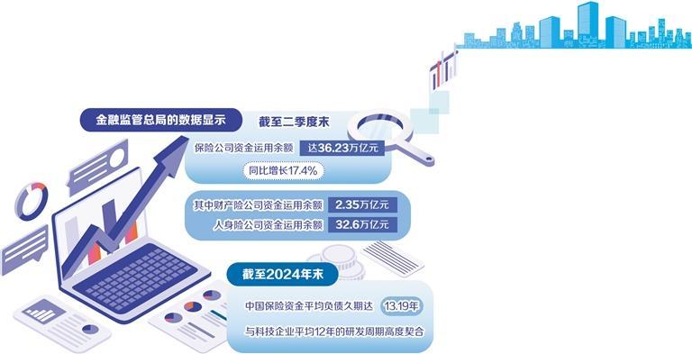國(guó)家金融監(jiān)督管理總局的數(shù)據(jù)顯示,截至2025年二季度末,我國(guó)保險(xiǎn)公司資金運(yùn)用余額達(dá)36.23萬(wàn)億元。在推動(dòng)科技創(chuàng)新、加速形成新質(zhì)生產(chǎn)力的戰(zhàn)略指引下,來(lái)自保險(xiǎn)行業(yè)的耐心資本正成為支持關(guān)鍵核心技術(shù)突破和戰(zhàn)略性新興產(chǎn)業(yè)發(fā)展的重要力量。保險(xiǎn)資金憑借其規(guī)模大、期限長(zhǎng)、來(lái)源穩(wěn)定的獨(dú)特優(yōu)勢(shì),積極踐行長(zhǎng)期投資、價(jià)值投資理念,為科技創(chuàng)新注入源源不斷的金融活水。