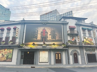 這兩天,乍浦路風貌影視街入口處,當年搭建“醬園”的地方又有了新變化。原先的《桃李劫》《馬路天使》的海報已撤下,掛起9米長、5米寬的《醬園弄》首發(fā)巨幅海報,電影拍攝時熱鬧打卡的城市記憶一時鮮活起來。勝利電影院門口的電子屏,滾動播放著《醬園弄》幕后花絮,為影片上映做宣傳。