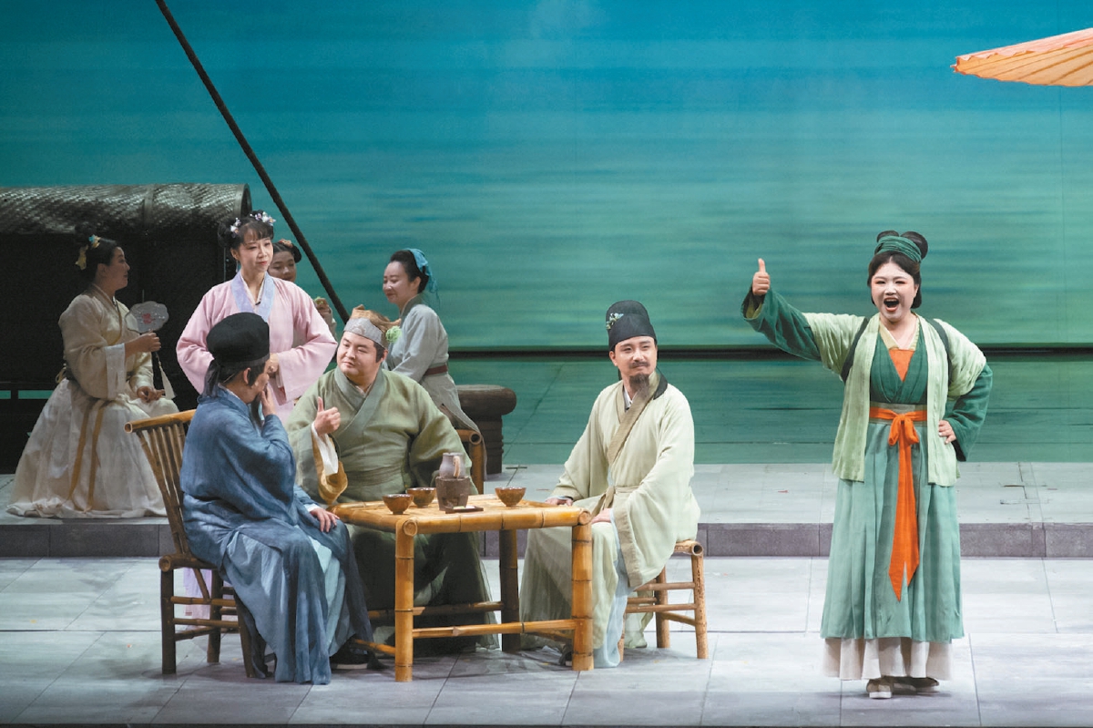 編劇曹路生借用清代李漁“立主腦、減頭緒、密針線”的創(chuàng)作理念大刀闊斧重構(gòu)敘事,刪減十余個支線人物,將敘事重心聚焦于趙盼兒、宋引章、孫三娘三位女性從錢塘到汴京的創(chuàng)業(yè)歷程。既延續(xù)關(guān)漢卿元雜劇《趙盼兒風(fēng)月救風(fēng)塵》的精神內(nèi)核,又汲取電視劇對女性情誼的現(xiàn)代詮釋,通過歌劇獨有的抒情性與戲劇張力,展現(xiàn)了中國女性“自尊、自愛、自立、自強”的精神內(nèi)核。導(dǎo)演蔣維國以“宋式美學(xué)的歌劇化重構(gòu)”為核心,巧妙調(diào)度舞臺,演員舉手投足間皆融入宋畫的“日常優(yōu)雅”,將影視IP的動人故事升華為具有普適價值的歌劇藝術(shù)表達。