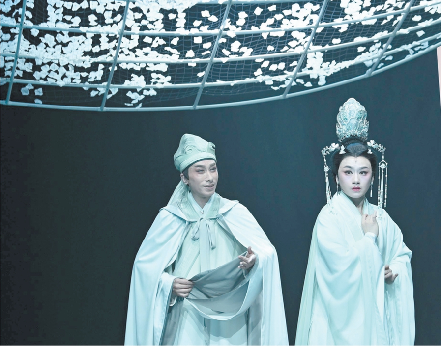舞臺上,《帝女花》長演不衰,多個劇團進行了重塑排演,其中不乏創(chuàng)新求變的探索。桃花源粵劇工作舍于2022年制作了《帝女花》65周年巡演版,并細(xì)分為管弦光影版、學(xué)生戲臺版等多個不同版本,激發(fā)觀眾的思考與想象。2024年,廣東粵劇院推出曾小敏、文汝清主演的小劇場粵劇《帝女花·一念》,在保留經(jīng)典唱段的基礎(chǔ)上做簡化,嘗試注入新的時代氣息。劇中,曾小敏不僅飾演了戴花冠、著宮裝的長平公主,還扮演了穿越古今的素衣女子,引領(lǐng)觀眾穿越古今,體驗長平公主的前世今生。