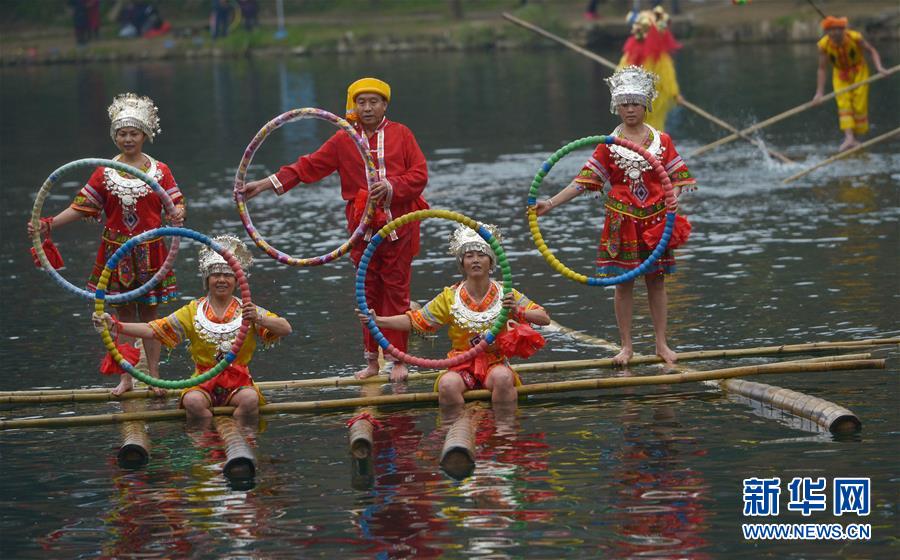1月1日,“獨(dú)竹漂”愛好者在花溪河上表演水上高難度平衡動(dòng)作。 2016年元旦,在貴陽市花溪公園平橋河段舉行的貴陽市第31屆冬泳表演活動(dòng)中,數(shù)十名“獨(dú)竹漂”愛好者在花溪河上腳踏漂浮的竹竿,表演“金雞獨(dú)立”、轉(zhuǎn)身平衡等高難度動(dòng)作,讓觀眾大飽眼福。新華社發(fā)(秦剛 攝)