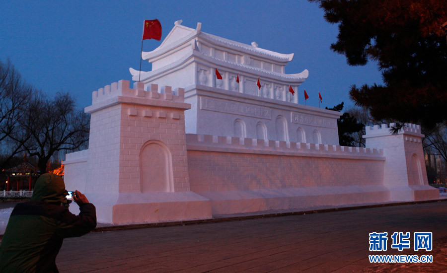 長(zhǎng)春南湖公園打造雪雕版“天安門城樓”