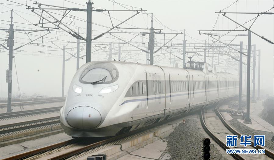 一輛動車組列車駛離石家莊火車站(1月9日攝)。 1月10日零時起,全國鐵路實行新的列車運行圖,增開旅客列車285.5對,其中增開動車組列車281.5對。運行圖調(diào)整后,全國鐵路開行旅客列車總數(shù)達到3142對,其中動車組列車1980.5對。新華社記者 牟宇 攝