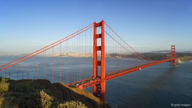 位于美國舊金山的金門大橋是世界著名的橋梁之一,也是近代橋梁工程的一項(xiàng)奇跡。大橋雄峙于美國加利福尼亞州長1900多米的金門海峽之上,歷時4年,利用10萬多噸鋼材,耗資達(dá)3550萬美元建成。橋長共2.7公里,橋體為橙色,跨度驚人。該橋于1937年對外開放,由工程師兼詩人約瑟夫·施特勞斯設(shè)計,其講究的懸架結(jié)構(gòu)和優(yōu)美的藝術(shù)裝飾塔令人贊嘆不已。