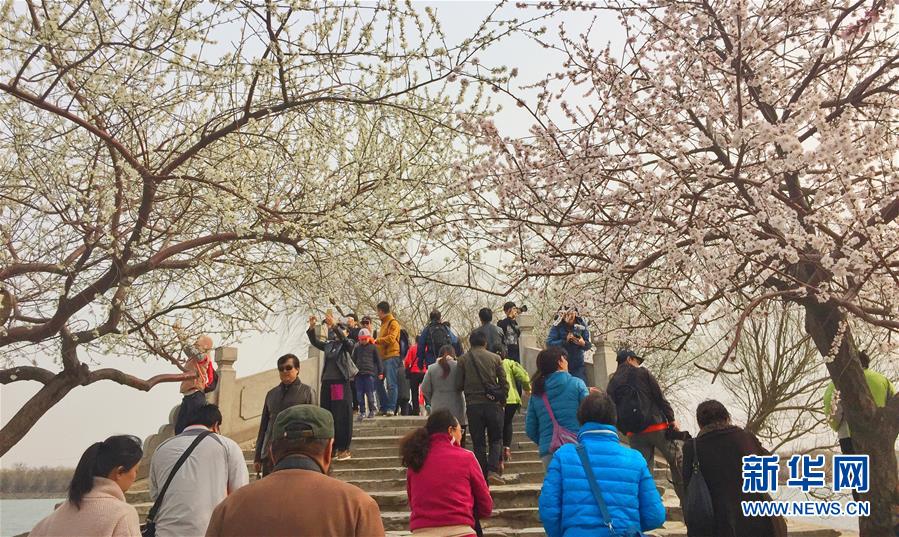 近期,隨著北京市氣溫逐漸升高,頤和園內的桃花、玉蘭花等紛紛綻放,吸引市民和游客前來游園觀賞。