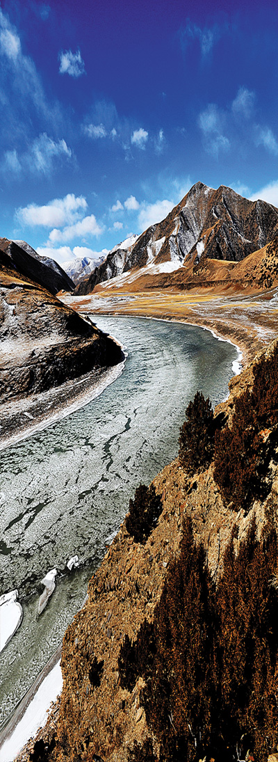 由于地處高原,通天河的身旁除了它滋養(yǎng)過的子民,便極少再有外人來(lái)此,因而此地的生態(tài)環(huán)境還保持著原來(lái)的模樣。走在河邊向前望去,遠(yuǎn)處是崇山峻嶺,近處是大河奔騰,無(wú)限的美景讓人感到無(wú)比愜意。彎下腰來(lái)坐在岸邊,靜靜地看著河水流淌,眼前的景象與《西游記》中的描寫有些相似,渾濁的河水翻滾著浪花。在河道中疾行而過,不禁讓人心驚膽戰(zhàn)。