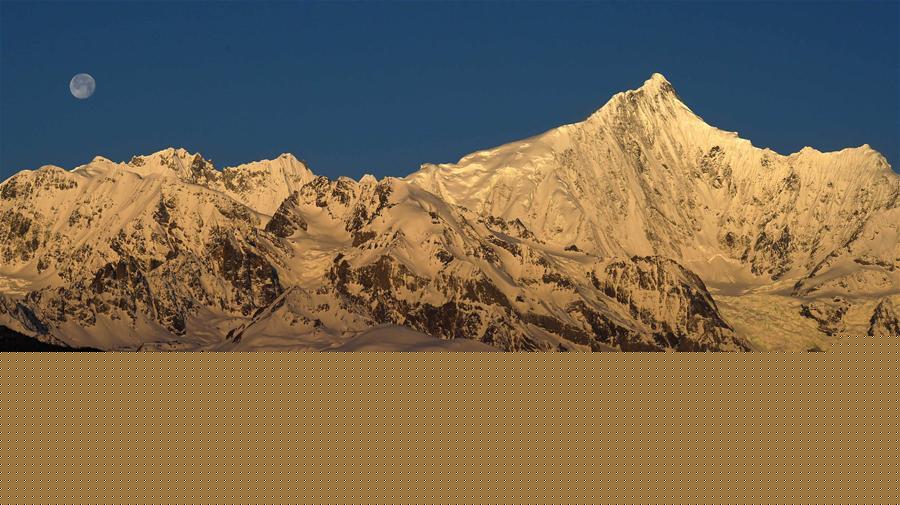 這是3月25日清晨拍攝的梅里雪山“日月同輝”景觀。梅里雪山位于滇藏交界的云南省迪慶藏族自治州德欽縣境內,是世界自然遺產“三江并流”的主要自然景觀之一。梅里雪山常年云霧籠罩,太陽光只在少數天晴的清晨照射在雪山頂上,形成絕美的“日照金山”美景。有時月亮尚未落山,太陽已經升起,更是形成了難得一見的梅里雪山“日月同輝”奇觀。新華社記者 王長山 攝