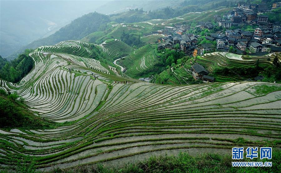 如今,梯田不僅是生存的載體,更已經(jīng)成為一種獨(dú)特的旅游資源,被稱為“地球上最美的曲線”。尤其春天,站在山頂放眼望去,形狀各異的大小梯田盛滿清泉,縱橫交錯的田埂如蛛絲一般,農(nóng)民們犁田、砌埂、削壁、灌水, 一個個身影點(diǎn)綴在如鏡般的梯田水面上,構(gòu)成了一幅秀麗壯觀、生機(jī)盎然的田園山水畫卷。