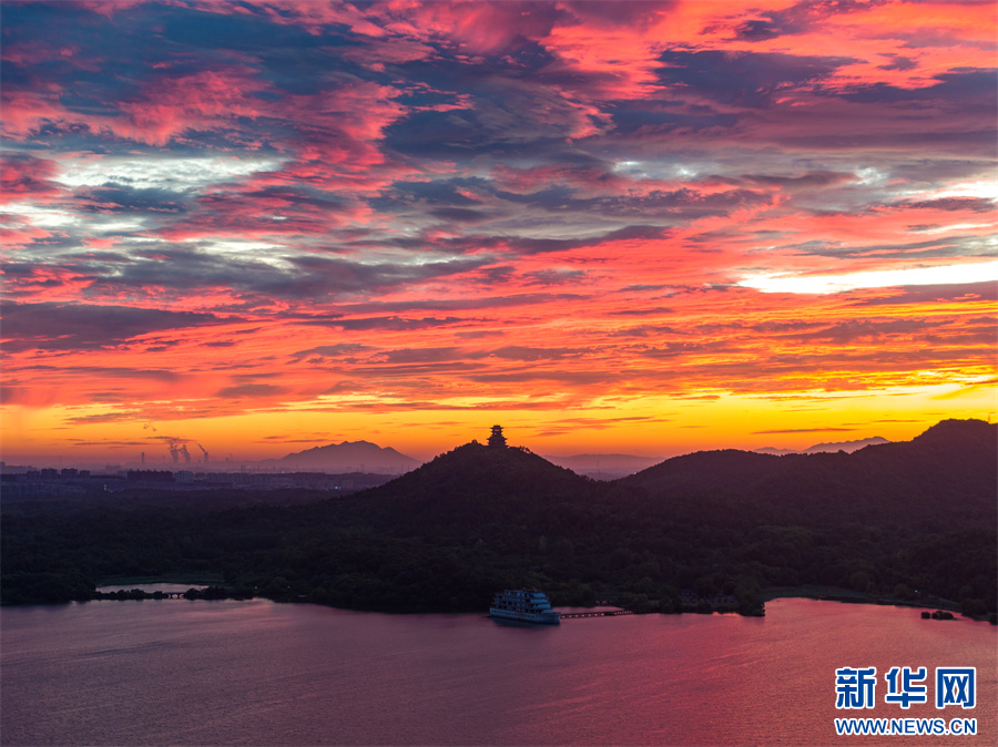 近日,安徽省池州市平天湖上空出現(xiàn)絕美朝霞景觀。新華網(wǎng)發(fā)(饒治國(guó) 攝)