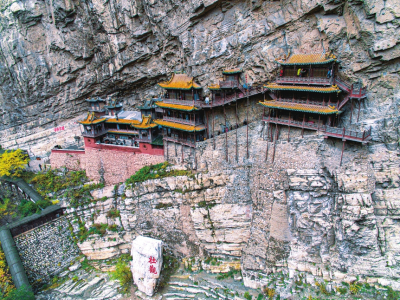 懸空寺位于恒山第二主峰翠屏峰的半崖峭壁間,始建于北魏后期,距今已有1500多年的歷史。整個建筑上載危巖,下臨深谷,樓閣懸空,結(jié)構(gòu)奇巧,是我國古建筑中罕見的杰作,堪稱“天下一絕”。詩仙李白游懸空寺后揮毫寫下“壯觀”二字,以表其懷。明代旅行家徐霞客在其著作《徐霞客游記》中稱贊懸空寺為“天下巨觀”。歷史文化名城保護(hù)委員會副主任、著名文物專家鄭孝燮視察懸空寺后題詞:“懸空寺玄、絕、奇、險(xiǎn),百來百看不厭”。