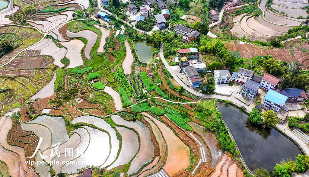 2026年4月1日,重慶墊江縣高峰鎮(zhèn)東風(fēng)村,層疊的梯田與錯落的民居,繪出一幅春日田園畫卷。