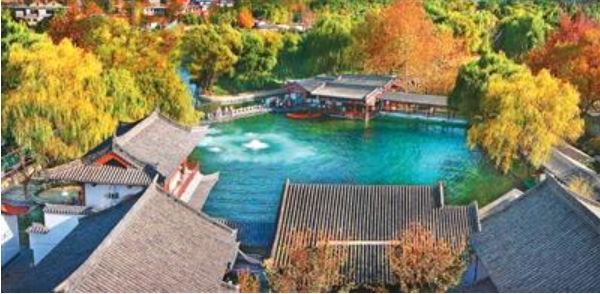 我問(wèn):“墻上寫的‘家家泉水,戶戶垂楊’,是真的嗎?”