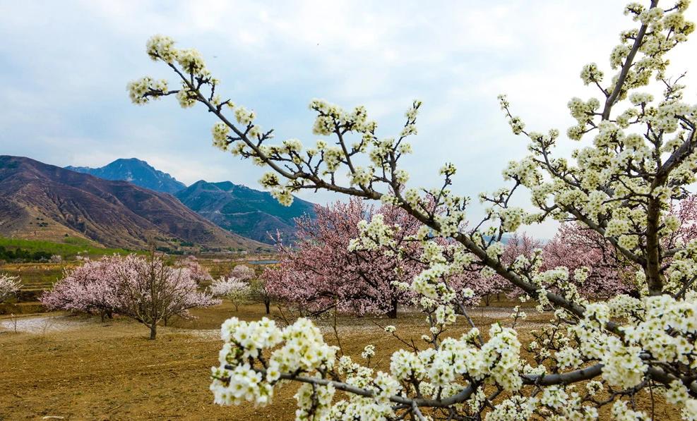 沿著長城一號旅游公路向西而行,一片片的杏樹接踵而來,滿樹的杏花你挨著我,我擠著你,嬌艷欲滴,微風拂過,清香味撲鼻而來。盛開的杏花一大片一大片的,粉嘟嘟的,花苞里微微泛著點紅,像害羞的少女嬌嫩嫩的,李峪的杏花開了。