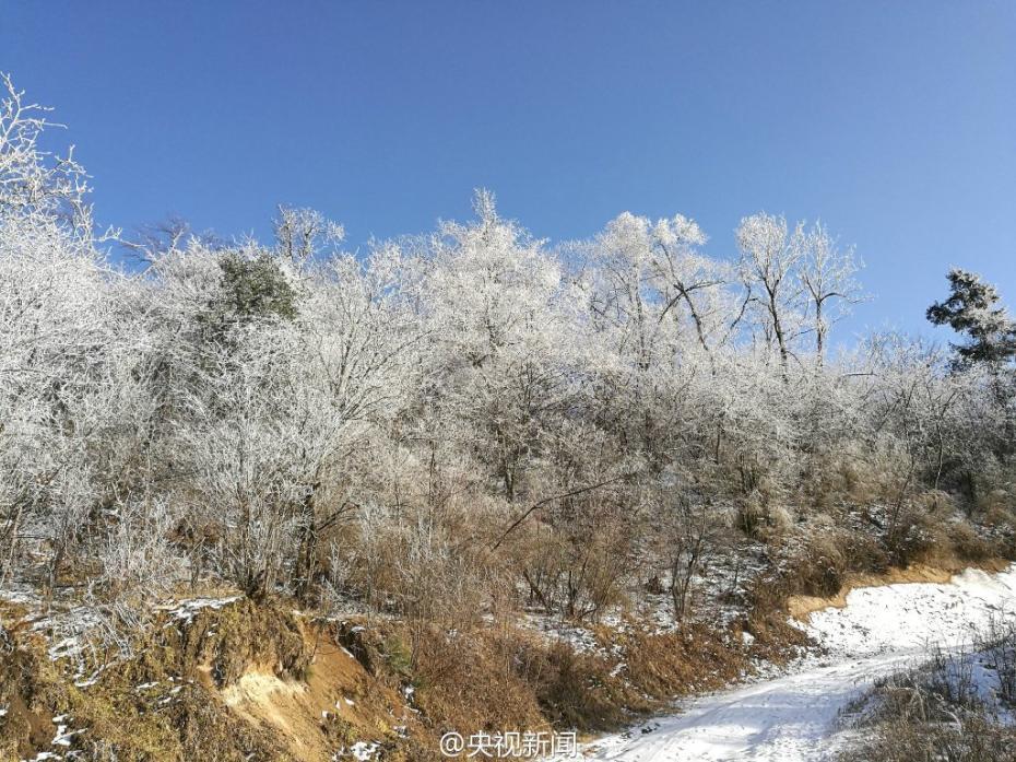 受較強冷空氣影響,秦嶺腹地涼風埡山頂,出現(xiàn)大面積霧凇景觀。玉樹瓊枝,晶瑩剔透,讓涼風埡山頂變得像童話世界一般,美不勝收。 央視記者王志杰 圖片來源:央視新聞微博