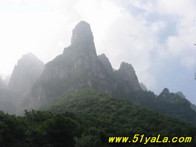 五老峰史稱東華山,歷史上為北方道教名山,海拔1809.3米,奇峰險(xiǎn)峻,需攀鏈而上,屬丹霞地貌。這里是層層峰巒,森林古木,各種生物覆蓋著整個(gè)山野?;t草綠,山光水色,風(fēng)光旖旎非凡,故有“北有五臺(tái)觀庫(kù)存宇,南在五老看風(fēng)光”之說。游人往縣城西南遠(yuǎn)眺,見有東錦屏峰、西錦屏峰、太乙坪峰、棋盤山峰四山峰仙態(tài)神姿,隱現(xiàn)于云煙蒼茫之中,將高1809.3米的玉柱峰環(huán)抱其中,“有偃蹇傴樓之伏”,猶如五位老人抱拳作揖迎貴賓之勢(shì),故名五老峰。