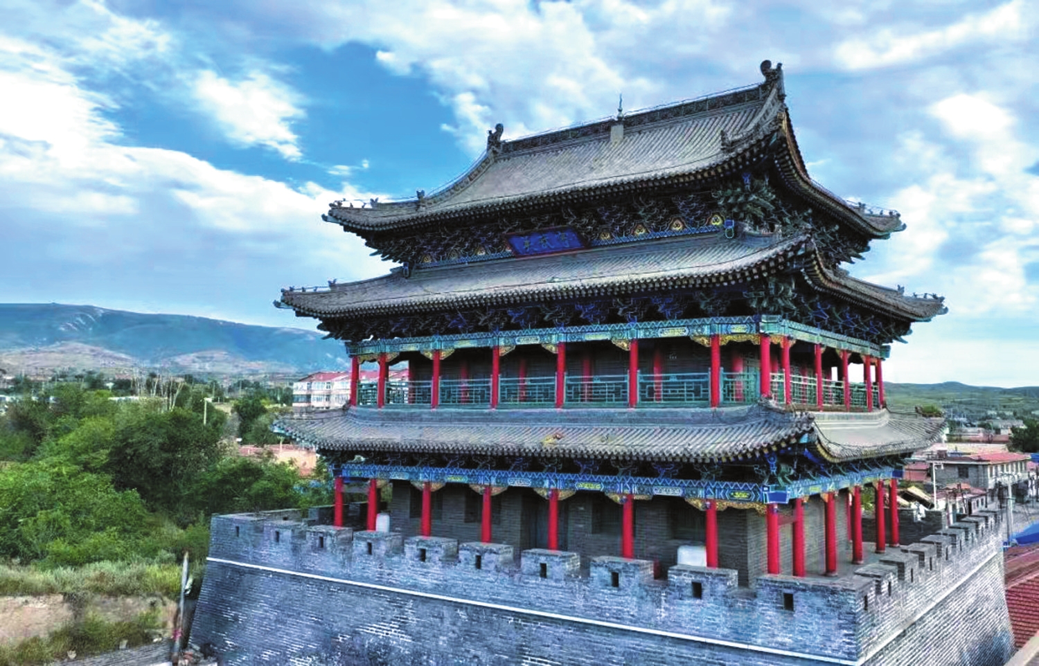寧武關(guān)城樓。吳光宇攝 夫?qū)幬湔撸湃i鑰,三晉翰屏。東據(jù)雁門關(guān)、巍巍紫塞,長(zhǎng)城逶迤難跨越;西擁偏頭關(guān)、滾滾黃河,天塹津渡足藩籬。居中策應(yīng),三關(guān)總兵運(yùn)帷幄;全局統(tǒng)籌,九州貔貅武衛(wèi)寧。古城新貌,美輪美奐;鳳凰涅槃,煥發(fā)青春。鳳鳴閣丹鳳朝陽(yáng)振翮羽,龍吟亭青龍布雨發(fā)嘯聲。四大街各具特色,六區(qū)片別有風(fēng)情,三廣場(chǎng)調(diào)和鼎鼐,兩中心主次分明。涔山鐘靈,珍禽異獸之鄉(xiāng)、烏金銀鋁之境;噴珠濺玉之泉、抗霜御寒之林。汾水毓秀,鐵馬金戈之域、駝鈴商幫之垠;翰墨文采之士、堡壘關(guān)塞之雄。爾來悠悠三萬(wàn)載,人猿揖別棄小可;欣逢人民共和國(guó),披荊斬棘唱大風(fēng)。 穿越時(shí)光隧道,窺視歷史風(fēng)云。建置沿革,由來久矣。春秋戰(zhàn)國(guó),樓煩故地。趙武靈王胡服騎射,雁門郡所屬;秦漢西晉一統(tǒng)寰宇,樓煩縣所領(lǐng)。北魏設(shè)廣寧、神武二郡,隋唐置樓煩、寧武兩軍。宋遼金元,寧化縣、寧化軍賡續(xù);洪武成化,千戶所、寧武關(guān)雙成。滿清設(shè)寧武府、寧武縣,府縣同治;民國(guó)則覆帝座、倡共和,府廢縣存。樓煩駿馬甲天下,頭馬營(yíng)、二馬營(yíng)、三馬營(yíng),騏驥騰驤、鐵馬金戈護(hù)桑梓;樓煩自古征戰(zhàn)地,東馬坊、中馬坊、西馬坊,骕骦馳騁、銀槍玉斧衛(wèi)山陵。御山部、匈奴,馬蹄踏踏;融鮮卑、契丹,戰(zhàn)旗獵獵;拒瓦剌、韃靼,鼙鼓震震??谷諔?zhàn)爭(zhēng),血火淬礪;解放戰(zhàn)爭(zhēng),狂飆突進(jìn)。新中國(guó)東方崛起,寧武縣風(fēng)騷獨(dú)領(lǐng)。 巍巍乎寧武之山。山地之廣,晉省首屈一指;山峰之險(xiǎn),堪比華岳崢嶸。左峙云中山,萬(wàn)年憑恃;右領(lǐng)管涔山,千里綿亙。荷葉坪三縣鼎盛,高山草甸鋪翠黛;蘆芽峰一枝獨(dú)秀,太子宮殿攬赤云。九十九座峰巒,層巒疊嶂、聳峙崚嶒,披蒼堆翠、險(xiǎn)阻壁壘大氣象;九十九處寶藏,峻峭崔嵬、嶙峋府庫(kù),薈萃蘊(yùn)精、洞天福地小蓬瀛。一夫當(dāng)關(guān)兮萬(wàn)夫莫開,千里射雕兮霹靂弦驚。 樹何青青,林何森森。云杉油松落葉松,擎天梁棟;側(cè)柏圓柏遼東櫟,柱地梧桐。山楊白樺,銀光熠熠;刺槐國(guó)槐,綠葉瑩瑩。萬(wàn)木蔥蔥盈綠庫(kù),千樹郁郁耀碧空。山珍嶺味,爽口沁心。山楂沙棘桃李杏,榛子杜梨酸棗仁。酸澀醋堿拌,甘甜蜜糖醇。君臣佐使,去疾驅(qū)瘟。大黃知母酬遠(yuǎn)志,枸杞黨參伴穿龍。紅景天景符璀璨,銀蓮花蓮氣氤氳。藥王采藥采不盡,醫(yī)圣醫(yī)人德無窮。 珍禽異獸兮繡空嘯林,翔翥騰躍兮鸞鳳麒麟。褐馬雞省鳥桂冠,一飛沖天辨皂白;金腰燕銜泥筑巢,一鳴驚人響雷霆。蒼鷹金雕,鋼爪鐵喙擒狐鼠;云雀杜鵑,輕聲細(xì)語(yǔ)報(bào)陽(yáng)春。四十七科完備,伯勞彩鷸;二四八種齊全,喜鵲百靈。金錢豹叢林霸主,梅花鹿福祿祥禎。青鼬石貂,飛巖走壁;原麝赤狐,麝香暖衾。保護(hù)動(dòng)物春常在,人與自然共依存。