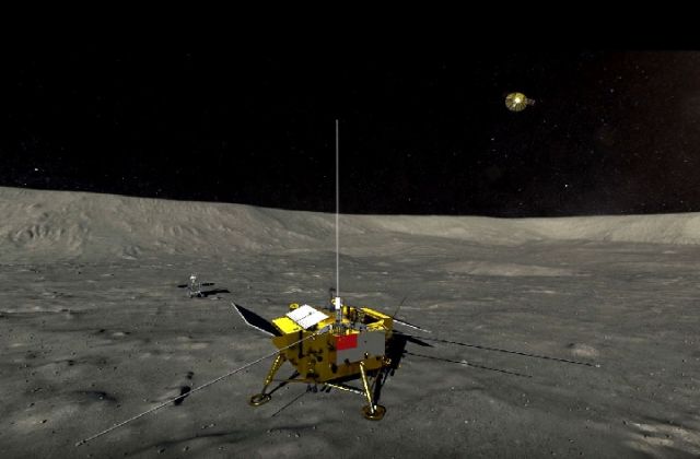 嫦娥四號、玉兔二號、鵲橋號全家福。(中國航天科技集團(tuán)五院供圖)