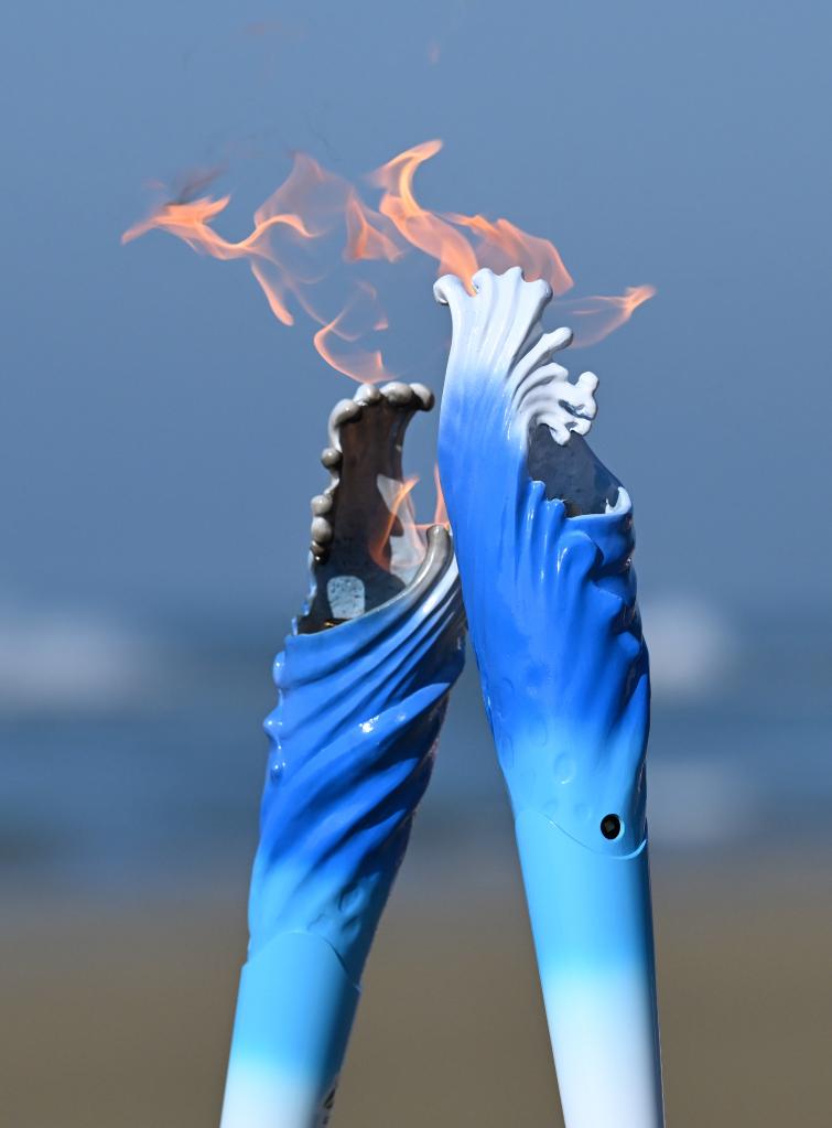 滿(mǎn)滿(mǎn)的科技感是本屆運(yùn)動(dòng)會(huì)的一大亮點(diǎn)。在此前進(jìn)行的采火儀式上,以可燃冰作為燃料的火炬科技感拉滿(mǎn),大放異彩?!疤剿鞫?hào)”科考船為本屆運(yùn)動(dòng)會(huì)采集的可燃冰,由潛航員通過(guò)保壓取樣器采集并帶回陸地?;鹁嬖O(shè)計(jì)團(tuán)隊(duì)表示,這象征科技的力量,也寓意海南自貿(mào)港發(fā)展的無(wú)限潛力。