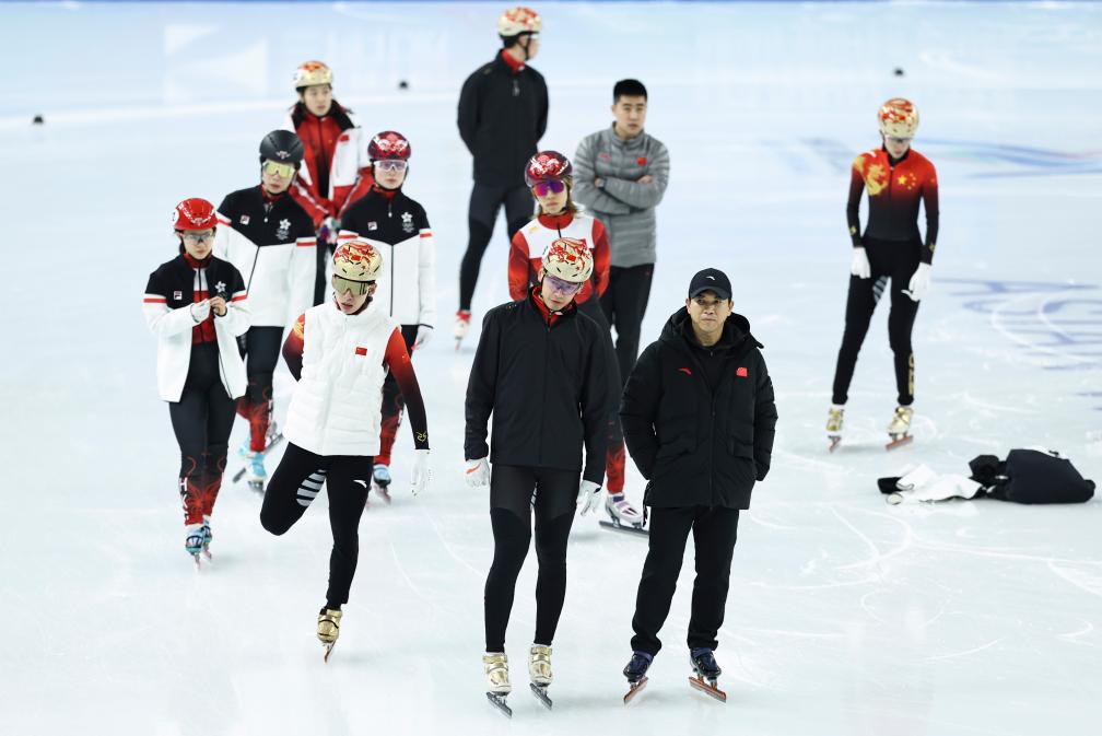 2月6日,中國(guó)隊(duì)在賽前訓(xùn)練中。新華社記者 鄭煥松 攝