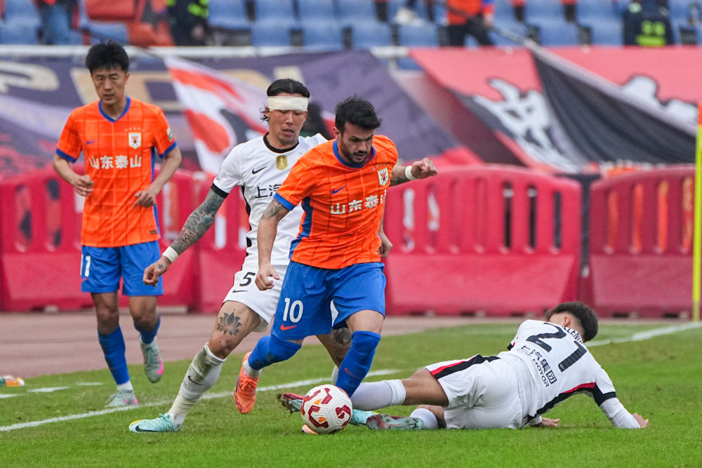 本輪比賽開始前,排名榜首的上海海港僅領(lǐng)先第二名成都蓉城2分。上海海港本輪客場(chǎng)對(duì)陣山東泰山,開場(chǎng)不久由李新翔打進(jìn)一球,取得領(lǐng)先。但隨后山東泰山迅速調(diào)整,并逐漸掌握主動(dòng)。第41分鐘,山東泰山外援澤卡反擊中突破送出斜傳,卡扎伊什維利跟進(jìn)殺入禁區(qū)低射,將比分扳為1:1。