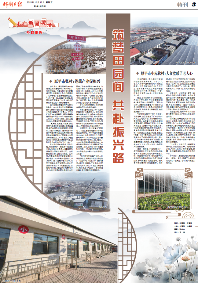 張村地處城鄉(xiāng)接合部,區(qū)位優(yōu)越,東鄰滹沱河,南接原平高速路出口,西鄰大運(yùn)高速,北靠國(guó)家電投集團(tuán)山西鋁業(yè)有限公司。全村耕地2400畝,全部為水澆地。近年來(lái),村集體通過(guò)多種渠道發(fā)展壯大集體經(jīng)濟(jì),2023年集體經(jīng)濟(jì)收入20萬(wàn)余元。除了蓮藕種植項(xiàng)目外,村黨支部牽頭成立智聚民心農(nóng)業(yè)開(kāi)發(fā)服務(wù)有限公司,購(gòu)置拖拉機(jī)、打捆機(jī)等農(nóng)機(jī),通過(guò)服務(wù)托管的方式,為本村和周邊群眾提供社會(huì)化服務(wù)。“今年完成秋耕2000余畝,為村集體增收10萬(wàn)余元;盤活閑置門面房出租,年增收4.5萬(wàn)元;出租集體機(jī)動(dòng)地,增收5萬(wàn)元;光伏發(fā)電年增收5000余元。”弓潤(rùn)鎖,這位老支書飽含感情且語(yǔ)氣堅(jiān)定地對(duì)記者說(shuō),“我們要讓每寸土地都發(fā)揮最大效益,讓村民共享發(fā)展成果?!?/p>