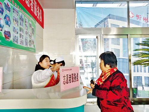 本報(bào)訊(實(shí)習(xí)記者 王菲)“大姐,您是哪里不舒服?”“我是來(lái)做檢查的,慢性病是在哪看呢?”“這個(gè)不在咱們這棟樓,我陪您過(guò)去吧。”在忻州市中心醫(yī)院的門(mén)診大廳,一位大姐看到大廳里人來(lái)人往,不知道該到幾樓找哪位醫(yī)生看病,志愿者見(jiàn)狀,快步走上前去,面帶微笑地與大姐打招呼,并很快帶著大姐去了就診區(qū)。