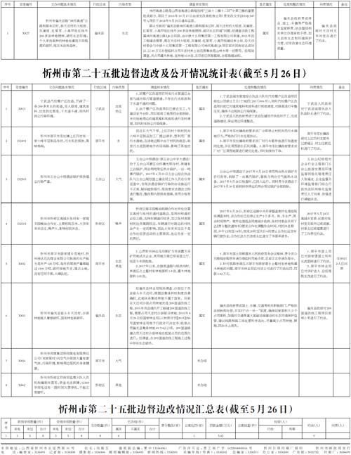 忻州市第二十四批邊督邊改及公開情況統(tǒng)計表(X827)(截至5月26日)