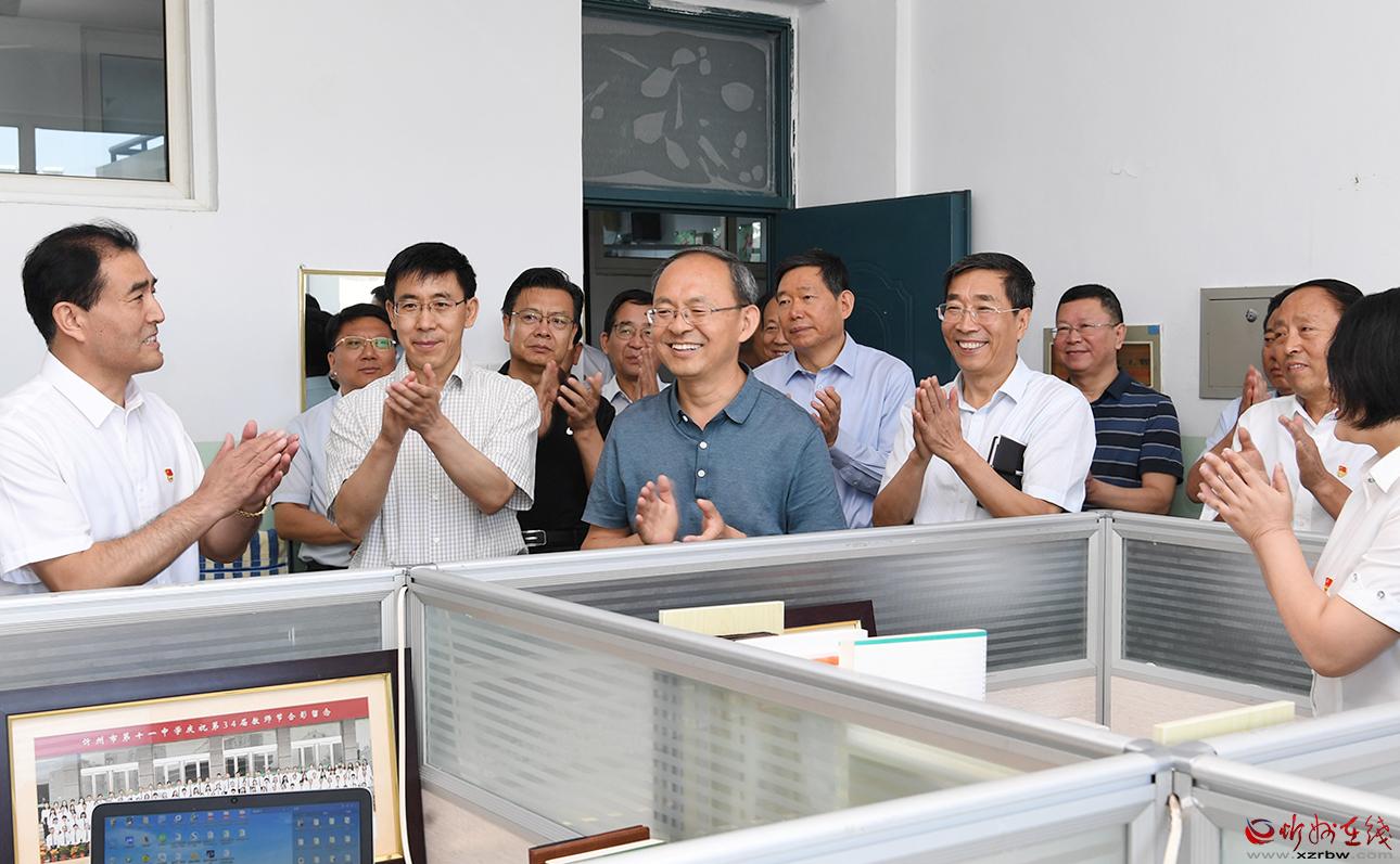 近年來(lái),忻州一中優(yōu)生培養(yǎng)取得階段性成果,綜合辦學(xué)水平大幅提升,高考一本達(dá)線率連年在85%以上,二本達(dá)線率逼近百分之百,教育質(zhì)量享譽(yù)三晉,教學(xué)成績(jī)位列全省第一方陣,這些都離不開該校全體教師的辛勤付出。鄭連生一行詳細(xì)察看了校園環(huán)境,并到數(shù)學(xué)教研室與教師進(jìn)行交流,聽取教育教學(xué)意見,詢問(wèn)工作生活上的困難。鄭連生指出,百年大計(jì),教育為本;教育大計(jì),教師為本,教師是教育事業(yè)發(fā)展的基礎(chǔ),要高度重視并切實(shí)抓好教師隊(duì)伍建設(shè),不斷提升教師的教學(xué)水平,為教師的工作和生活創(chuàng)造便利條件。各級(jí)各部門要始終堅(jiān)持教育優(yōu)先發(fā)展戰(zhàn)略,加大財(cái)政投入,加強(qiáng)政策支持,全面優(yōu)化教育發(fā)展環(huán)境,推動(dòng)忻州教育水平再上新臺(tái)階,為我市經(jīng)濟(jì)社會(huì)發(fā)展培養(yǎng)更多人才。