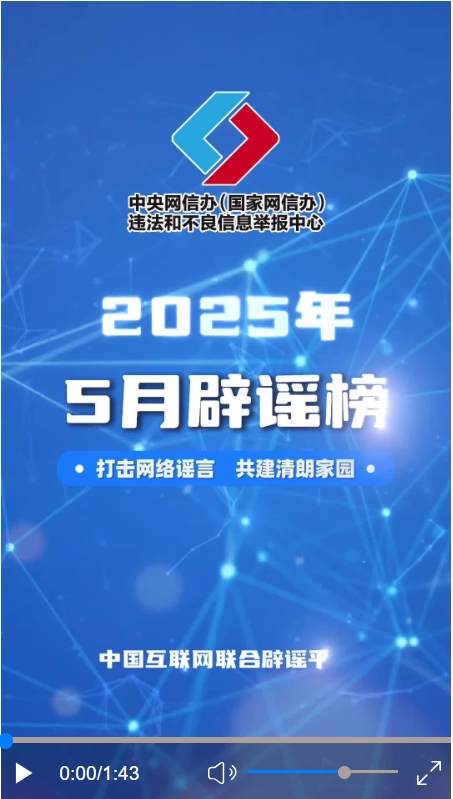 打擊網(wǎng)絡(luò)謠言 共建清朗家園 中國互聯(lián)網(wǎng)聯(lián)合辟謠平臺2025年5月辟謠榜