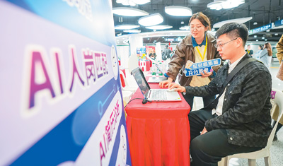 日前,在福建省福州市鼓樓區(qū)安泰街道南門(mén)兜地鐵站里舉行的2025年就業(yè)援助月專(zhuān)項(xiàng)活動(dòng)中,工作人員利用AI技術(shù)和大數(shù)據(jù)分析等先進(jìn)技術(shù),為求職者提供智能化的崗位匹配和職業(yè)規(guī)劃建議。謝貴明攝(人民視覺(jué))
