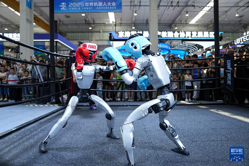 從登上春晚表演到人機共跑“半馬”,從綠茵場上踢球到拳擊臺上打擂……人形機器人技術和產業(yè)的快速發(fā)展引人關注。 人形機器人能進廠打螺絲、進家做家務了嗎?真正“讓機器人干活”,還需要多久?帶著這些問題,“新華視點”記者走進正在北京舉辦的2025世界機器人大會尋找答案。 技術突破:人形機器人加速進化 “加油!加油!”大會現(xiàn)場,宇樹科技展臺被人群圍得水泄不通,助威吶喊聲不斷傳出—— 人群中央的拳臺之上,兩個佩戴頭盔、拳套的人形機器人出拳凌厲迅猛、回旋踢行云流水,被擊倒后迅速起身,引得現(xiàn)場觀眾陣陣驚呼。 “升級后的G1格斗款人形機器人采用最新一代技術?!庇顦淇萍紕?chuàng)始人王興興說,機器人的穩(wěn)定性和抗干擾能力進一步提升,出拳速度更快、力道更大、動作更絲滑。