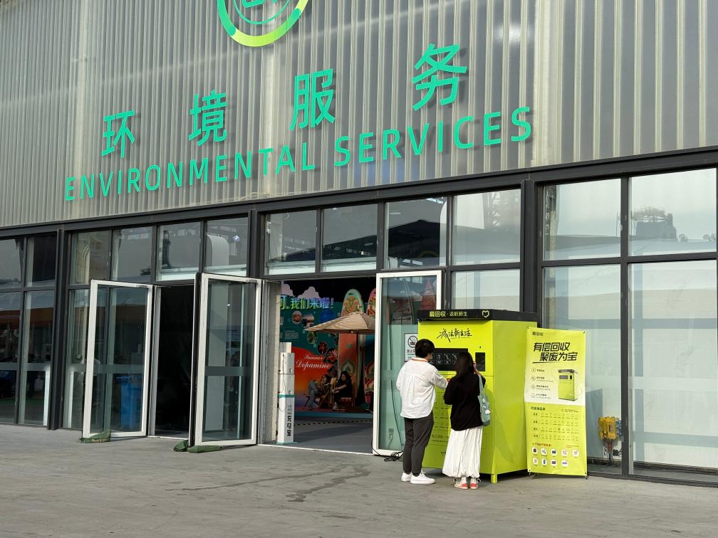 在2025年中國國際服務(wù)貿(mào)易交易會(huì)現(xiàn)場,觀眾體驗(yàn)可回收物智能回收機(jī)。新華社記者 田晨旭 攝